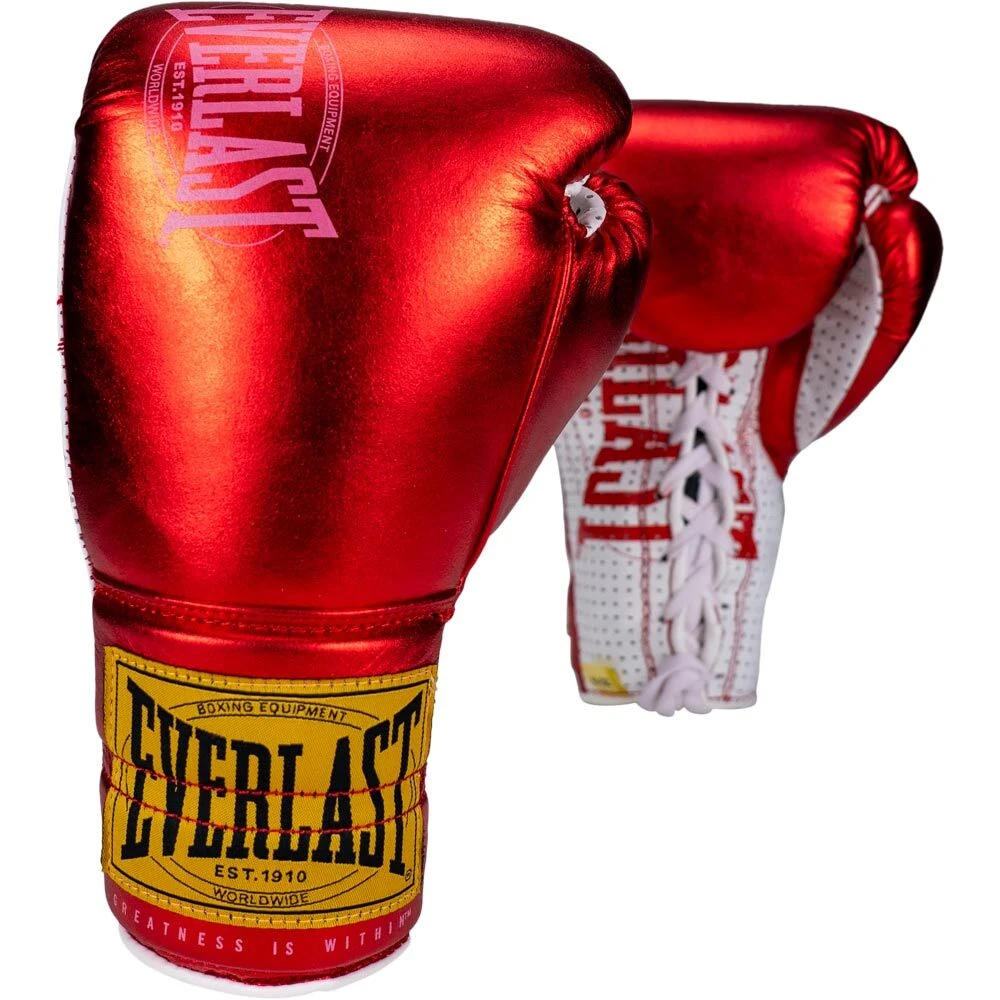The unmatched Everlast 1910 Fight Glove is an elevated take on a legendary boxing glove line. Built with premium metallic leather & ventilated palms, this glove is the perfect balance of power and protection. Timeless icon of boxing style with laser etched detailing on fist and authentics Everlast logo on the cuff. The 1910 line is enriched with history while bringing all the luxuries and technological advances of a modern day glove.
