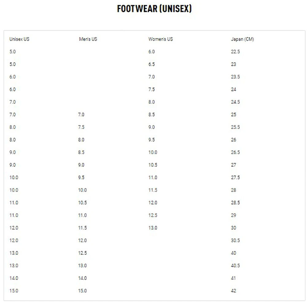 - US sizing