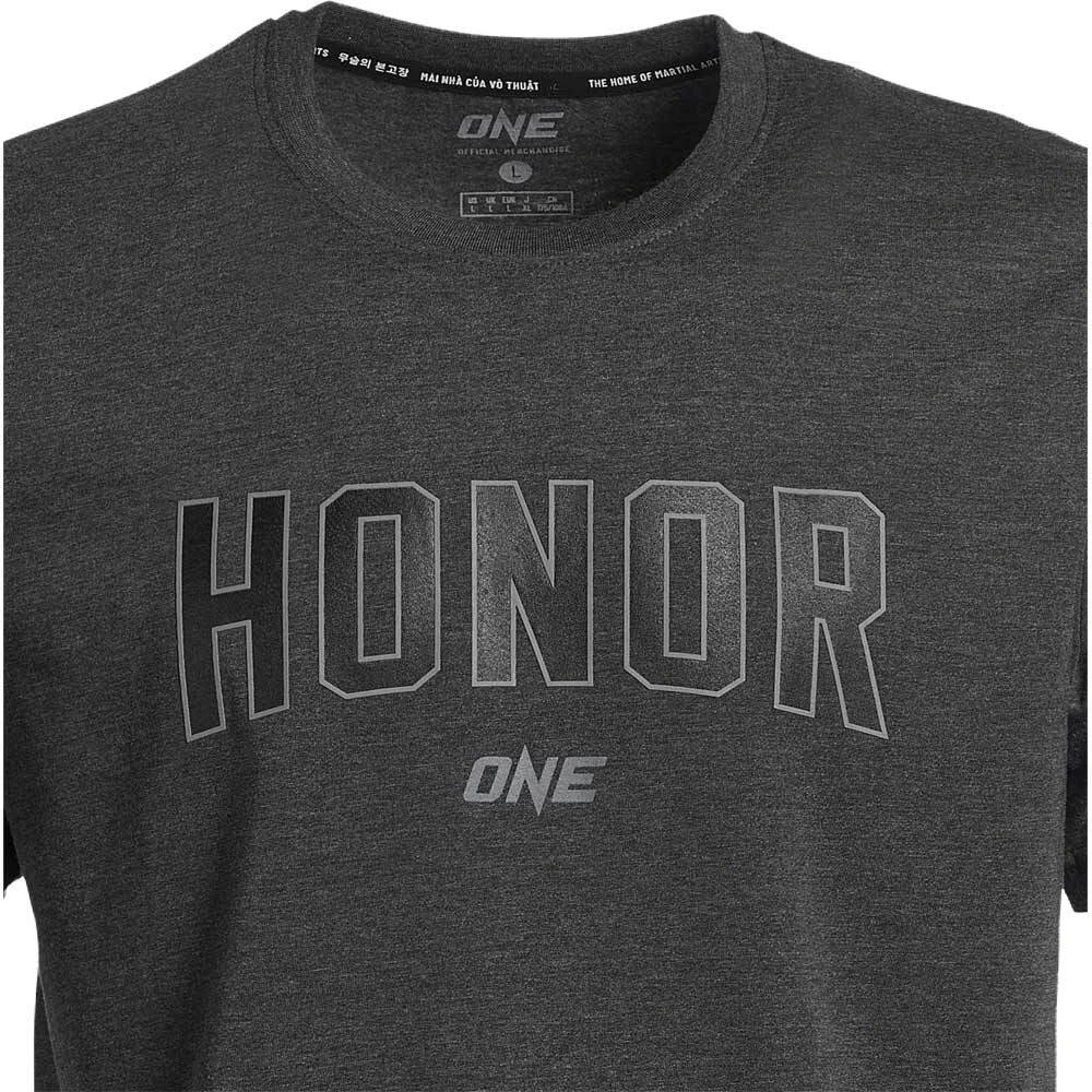The Honor Tee features one of the hallmark values of martial arts and of ONE Championship. Against a classic dark heather grey t-shirt, the word ‘Honor’ is displayed in specially designed typography and is outlined in high-density ink for a crisp 3D feel. The Honor Tee is finished with our multilingual “The Home of Martial Arts” woven neck tape and has a screen-printed inner neck label for added comfort.