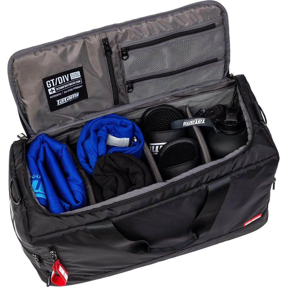 In a block shape, the Ultimate Gym Bag features black on black branding with red highlights, creating a modern cool look. The bag comes with a holding strap and an adjustable shoulder strap for added comfort. With a 40-45L capacity, the Ultimate Gym Bag offers ample space for workout gear or anything else you may need.