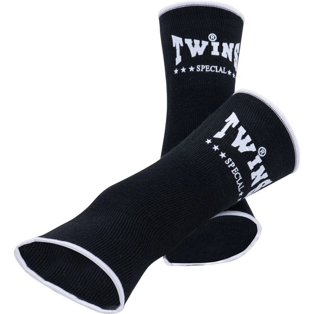 Protect yourself with Twins Ankle Supports. These high-quality ankle supports are moderately elastic to give a better fit around the contours of the ankle. Twins Ankle Supports feature extra strong stitching for better support and safety and deluxe cotton construction for the utmost comfort. They are durable enough to withstand the punishment of serious Muay Thai workouts.