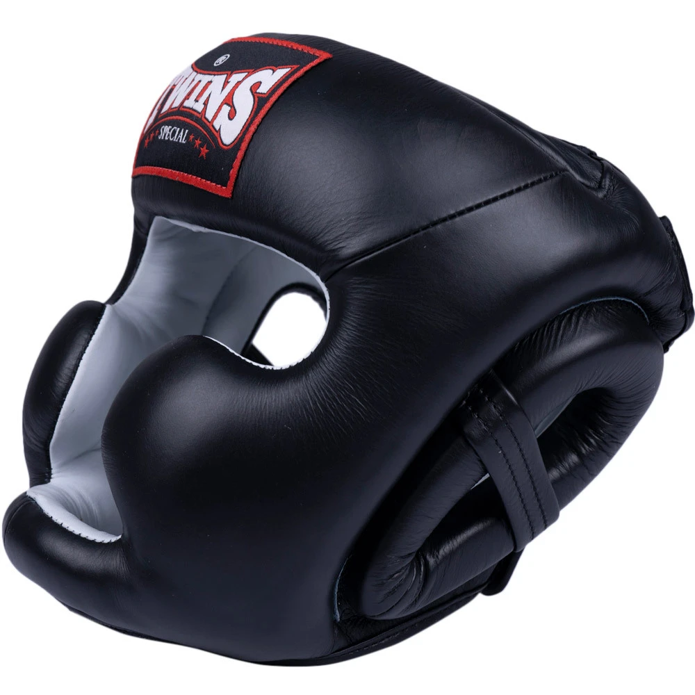 This Twins Full Face Head Gear- Premium Leather in Blue and Black is made to withstand the punishing training regiment of Top MMA fighters. The firm, high-density foam padding, adjustable chin strap, and cheek protection provide a secure fit and enhance the balance between comfort and protection. This Professional Model is for those competitors who are really serious about their training and sparring, and like all Twins Special products, it is made from the finest materials. It will give you the performance and long-lasting durability you would expect from Twins Special FIGHT GEAR. Its quality craftsmanship and rugged design are unmatched. Whether you are training in Muay Thai, western boxing, MMA, or personal self-defence you will not find better Head Gear- Premium Leather anywhere. No one offers Fighting Arts products that compare with the variety, functionality, or aesthetic design that Twins Special is known for. All of our Head Gear- Premium Leather is made from 100% leather and top-of-the-line high-density padding.