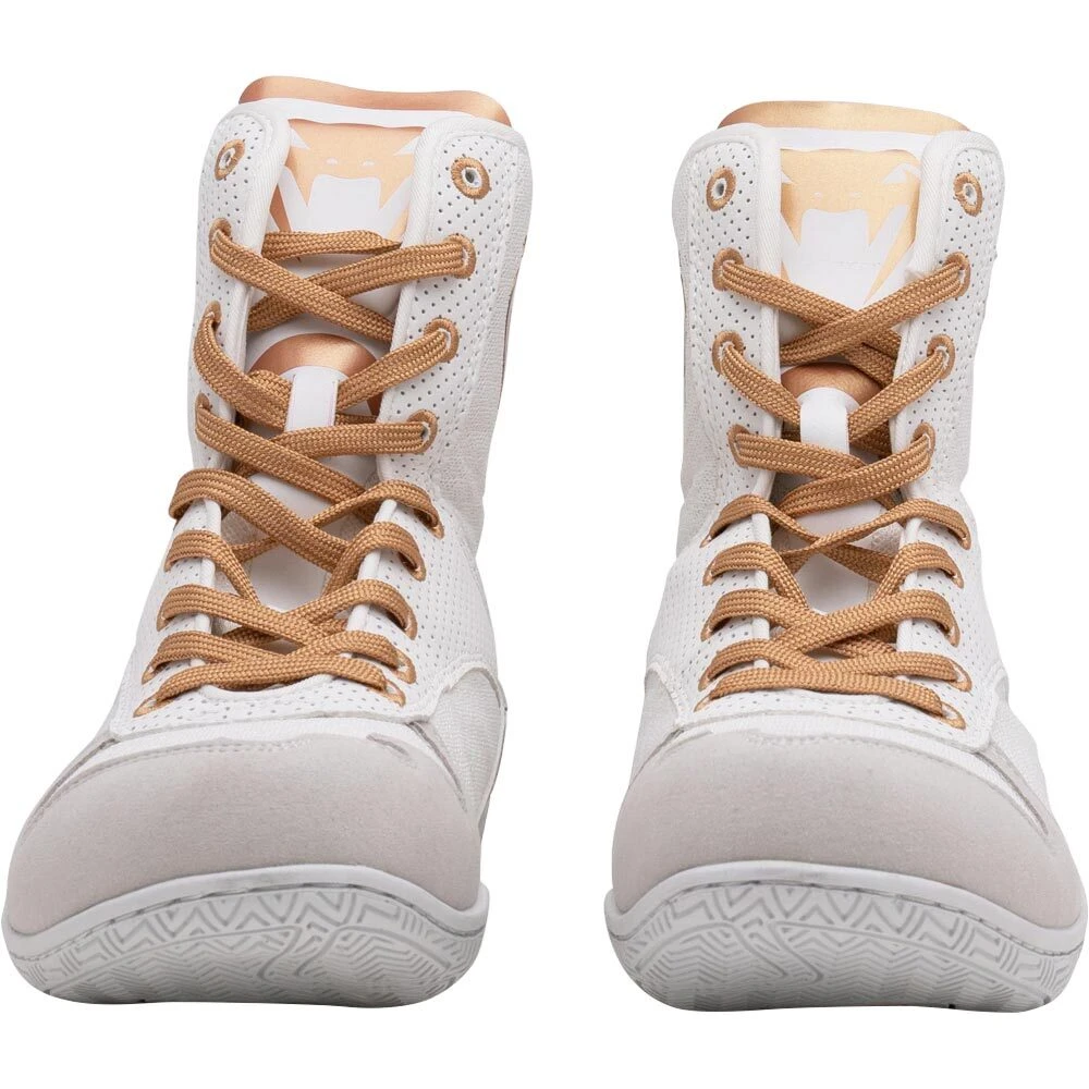 The Elite boxing shoes are the result of strategic research, development and collaboration done by the product engineers and TeamVenum boxing champions. Their goal was not to offer ‘just’ another boxing shoe, but the best product available on the market. The sole was one of the most intricate components to develop. Whilst necessary to combine characteristics such as lightness, strength, stability and grip, it had to provide explosive support to allow a boxer to move very quickly in any direction. Whilst including these dynamic qualities, the Venum boxing shoe had to offer comfort and protection to the wearer. The insole was designed to perfectly fit the plantar arch of the foot, without being too bulky or uncomfortable. Despite being a shoe optimized for the attacker, the Venum Elite allows the wearer to manage the distance thanks to the excellent lateral ankle support provided by its mid-cut silhouette. Defensive manoeuvres are handled with ease. To maximize comfort, the ”Honeycomb” mesh enables the foot to breathe during the most intense workouts, whilst being incredibly resistant and increasing the longevity of the shoe. Although the performance was at the heart of the design, being a Venum product, style and design have not been forgotten.